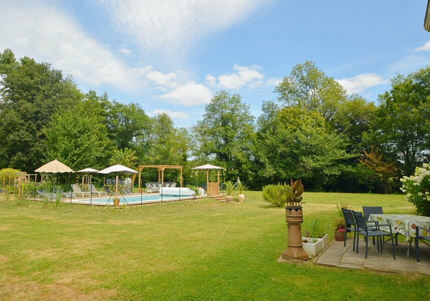 La villa est entourée par la rivière Loue, offrant une intimité et une sécurité naturelles. La piscine privée, installée en 2023, est idéale pour des moments de détente en famille lors des belles journées dorgonaises, tandis que les différents espaces extérieurs permettent de choisir entre soleil, ombre, coins tranquilles ou encore le coin barbecue et repas.