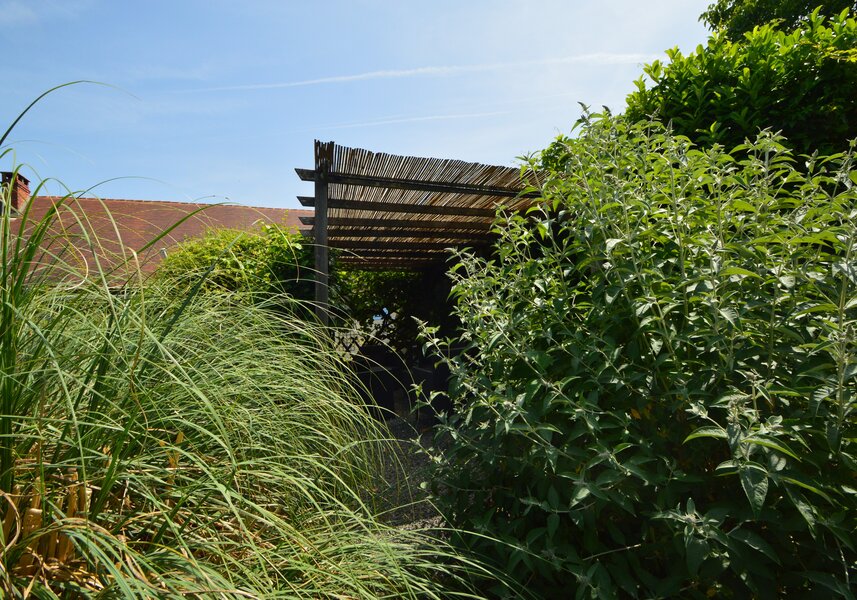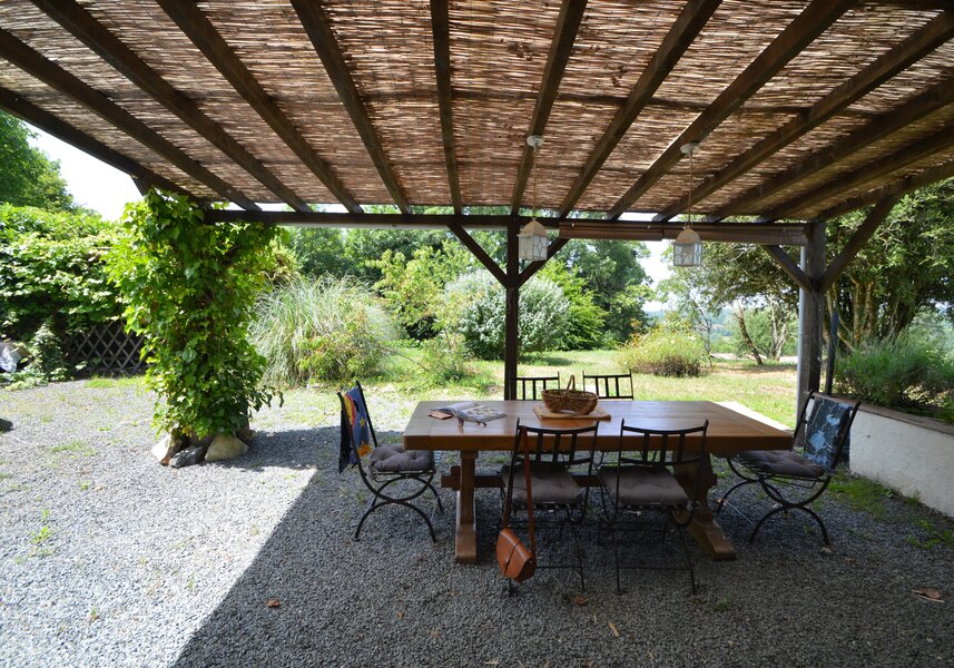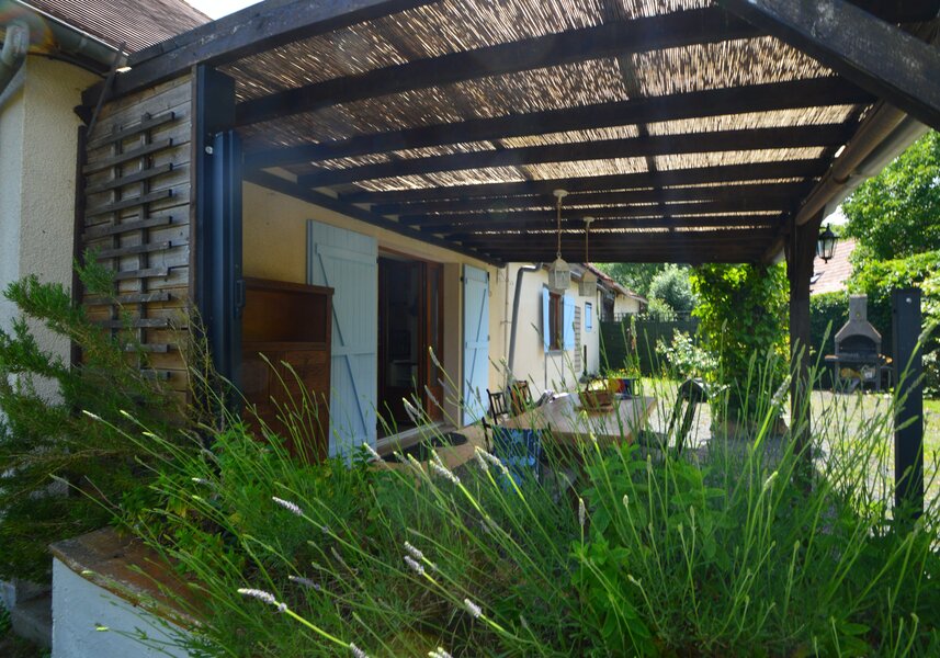 Extérieur Maison de plain-pied alliant charme de l'ancien et confort moderne, agréable avec son grand jardin clos et aménagé d'une pergola avec salon et d'une autre avec coin repas et barbecue.