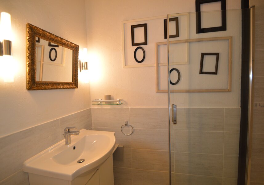 Le couloir dessert 2 chambres confortables (lit de 160 ou 2 x 80 si nécessaire), dont une avec 1 salle de bain et toilettes attenantes, et une deuxième salle de bain et toilettes.