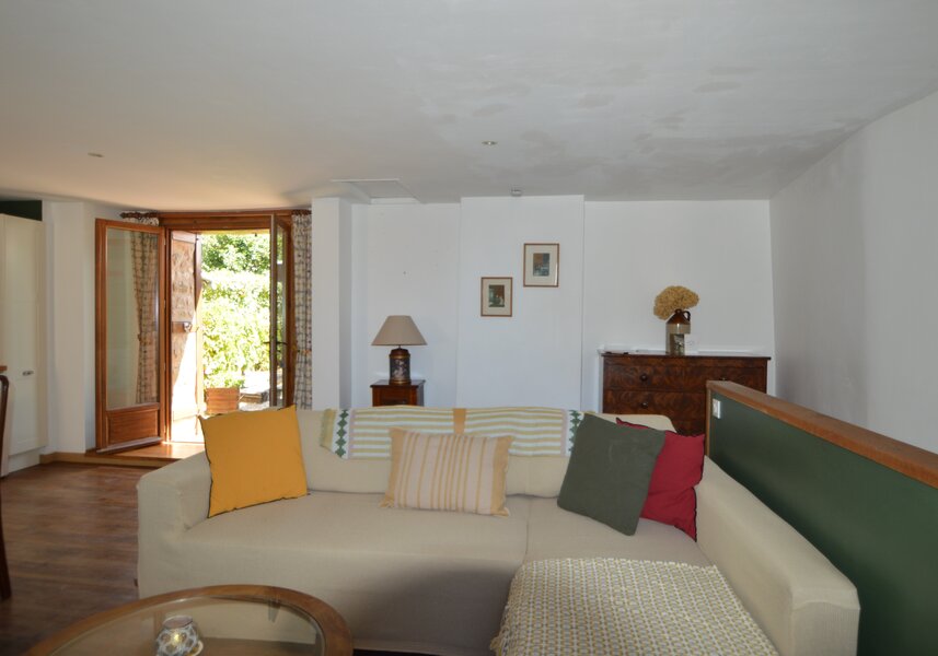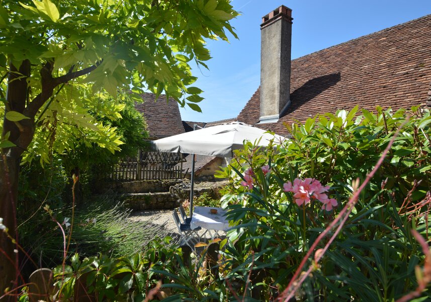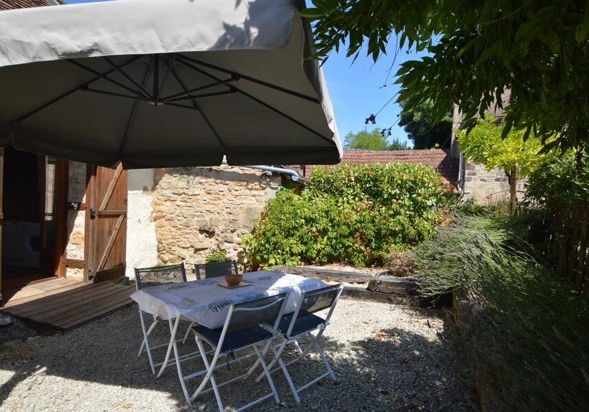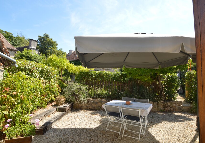 Le premier étage mène joliment aux portes-fenêtres qui s'ouvrent directement sur le joli jardin privé, délimité par des haies de lavande parfumées, des vignes, du chèvrefeuille et des rocailles colorées. Cet espace est entièrement privé et clôturé. Du mobilier d'extérieur avec coussins, parasol et barbecue Werber sont également fournis aux clients.